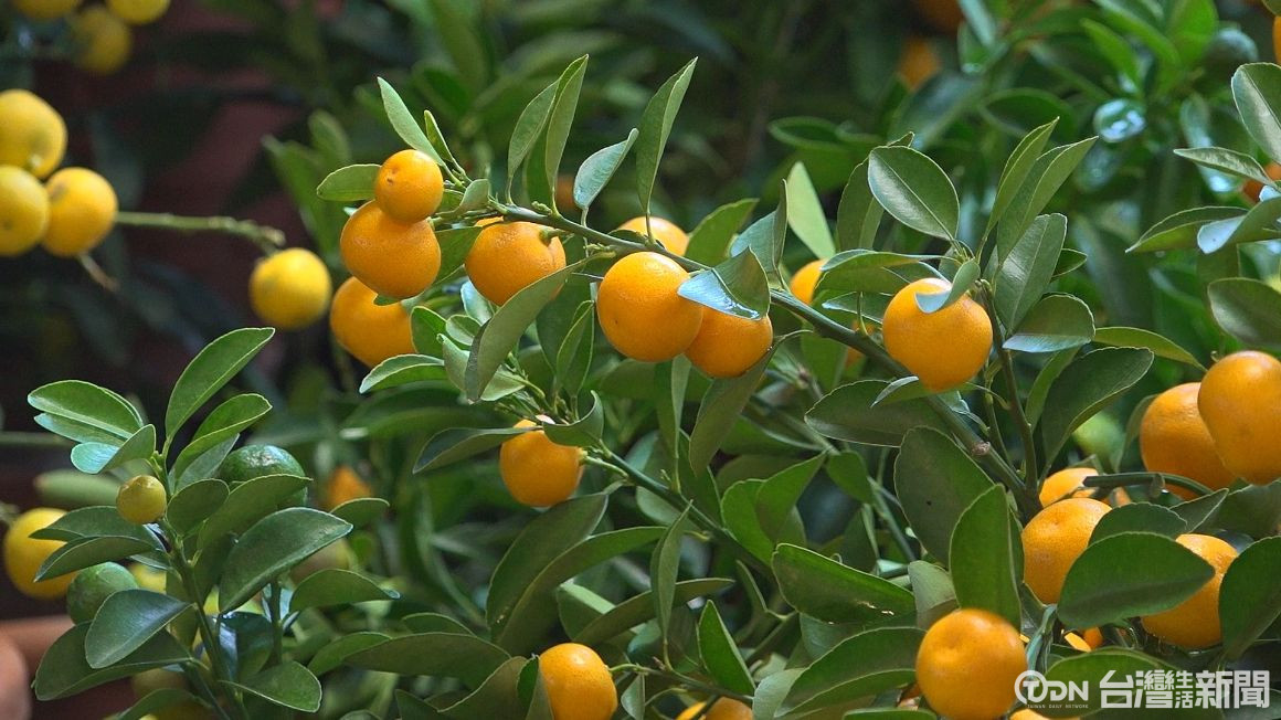 ▲鮮花除了點綴之外,還有富含吉祥的寓意,像是金黃耀眼的金桔/記者 陳昭安攝