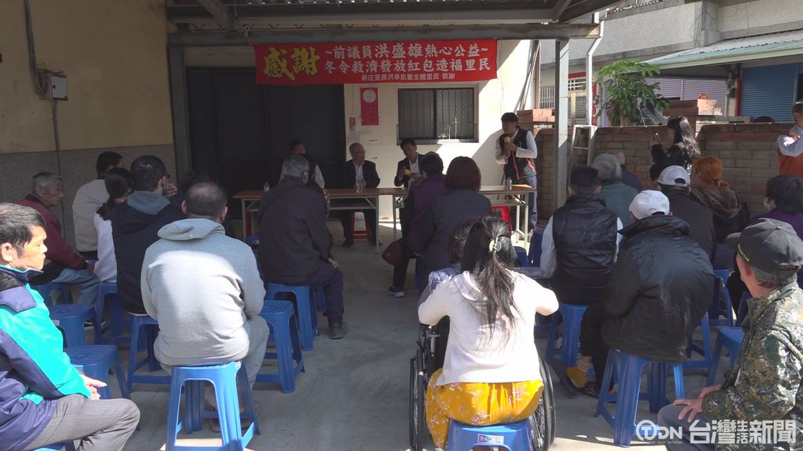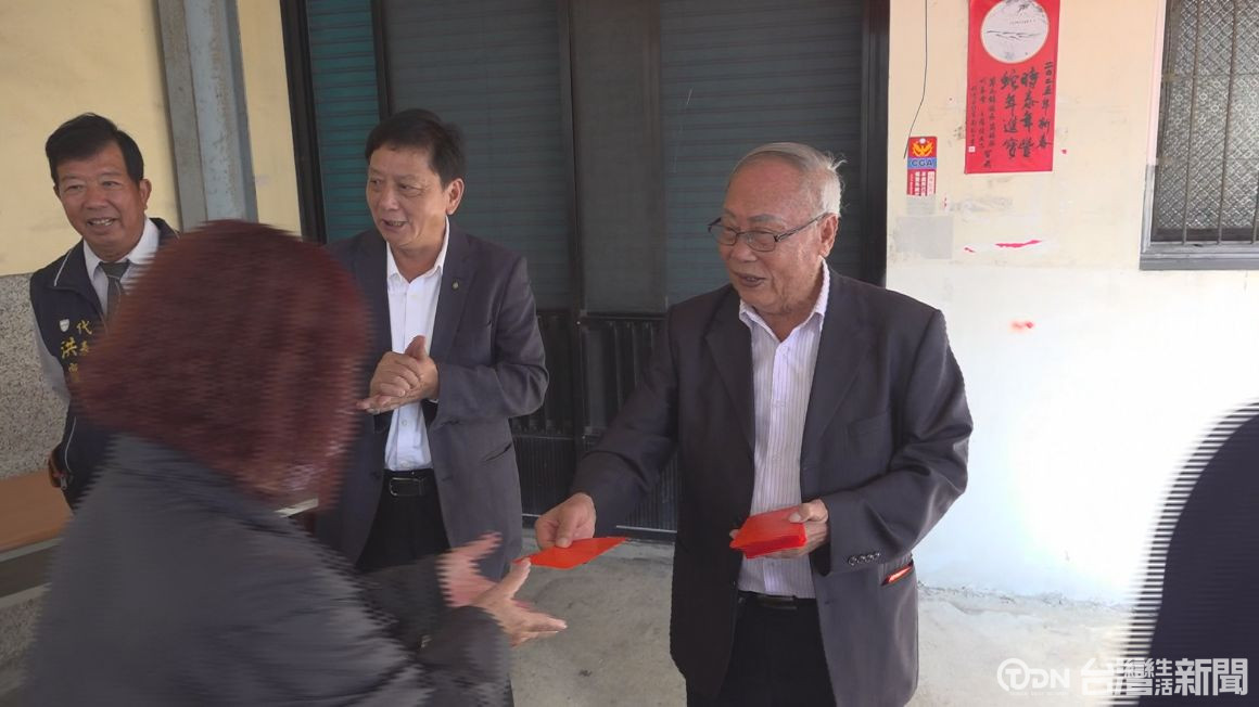 前南投縣議員洪盛雄親自將紅包一一交到鄉親手中,現場氣氛溫馨,這項趁著過年前發放加菜金關懷弱勢戶的公益活動,已經進入第四年。