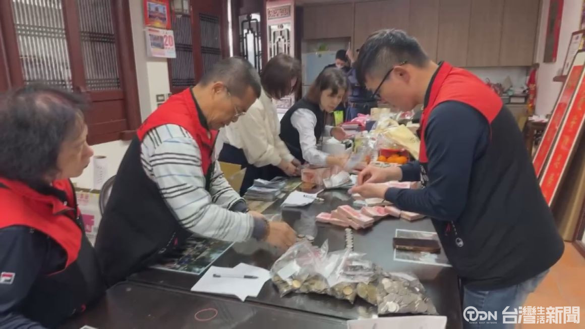 ▲臺南善化慶安宮將除夕至大年初六,所收的香油錢領回廟內清點,總金額將近新臺幣800萬元。/記者 蕭建緯攝