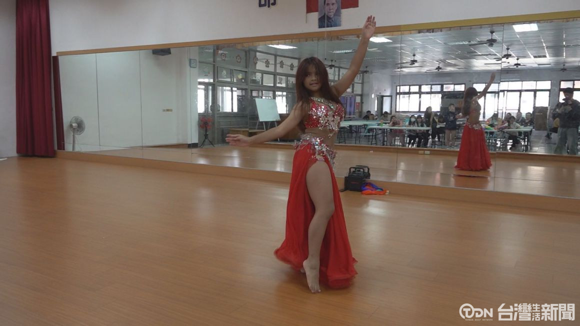 ▲13歲何郁婷練習東方舞,動作俐落、節奏穩定,展現舞蹈實力/記者 蔡育楷 攝