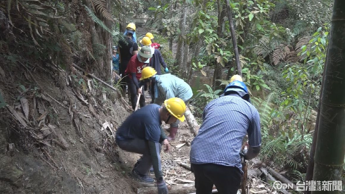 ▲步道修復的模式,需要大量人力支援,包括林保署、日本龍谷大學師生連續兩年都來響應步道修復的工作/記者 范宏坤 攝