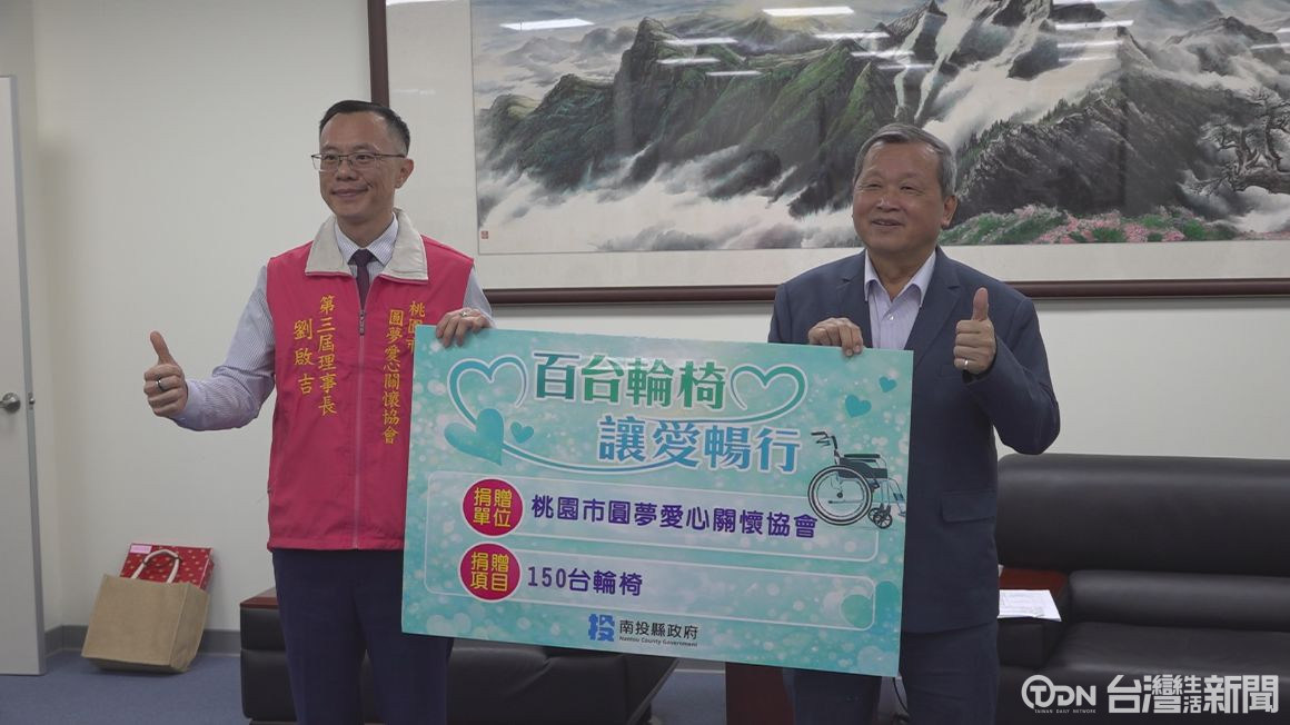 桃園市圓夢愛心關懷協會成立後,以每月一愛,習慣養成的理念,長期投入社會公益,其中的百台輪椅讓愛暢行行動,也持續進入第五年,這次捐贈了150台愛心輪椅給南投縣,縣府舉辦捐贈儀式表達感謝,表示會妥善運用這些輪椅循環再利用。