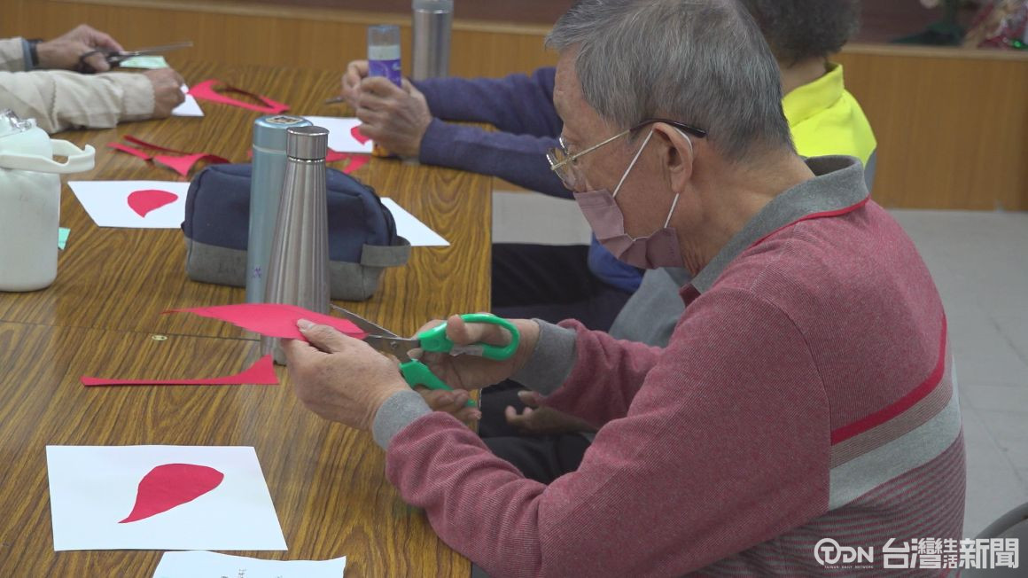 ▲社區長輩專心製作可愛的魚圖。/記者 何羿勳 攝