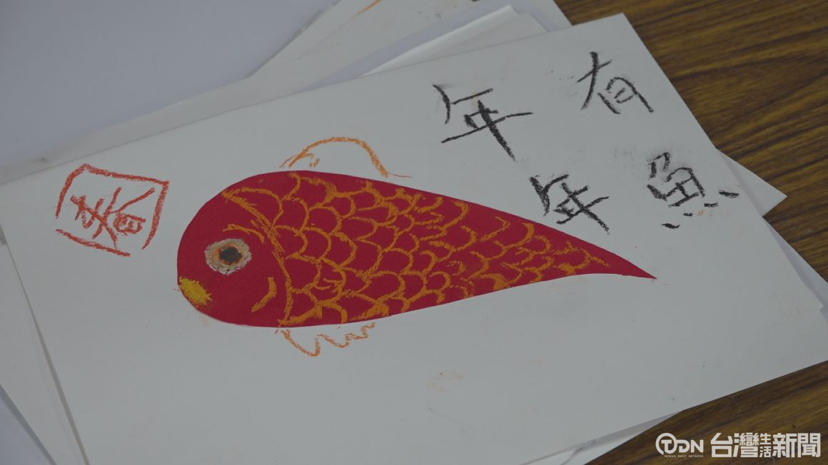 ▲勞作課程添創意,象徵在新年可以「年年有餘」。/記者 何羿勳 攝