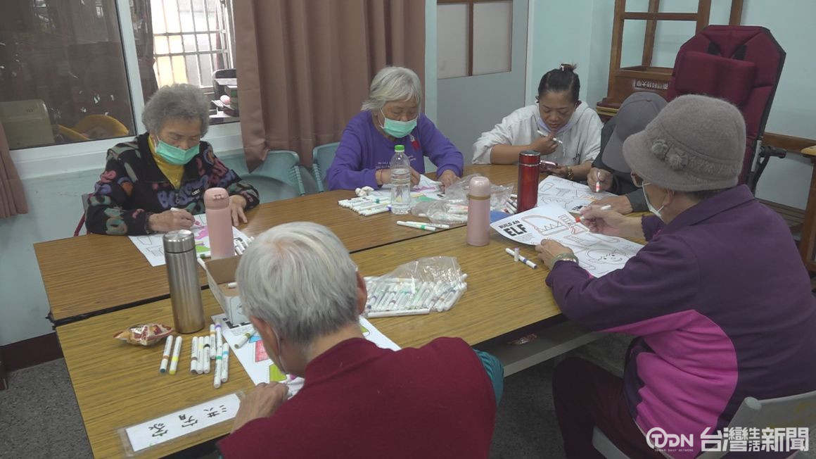 長輩們拿著色筆,為圖案塗上自己喜歡的顏色,不僅讓作品變得繽紛,也能訓練對顏色的認知,在輕鬆的氣氛中一起學習。