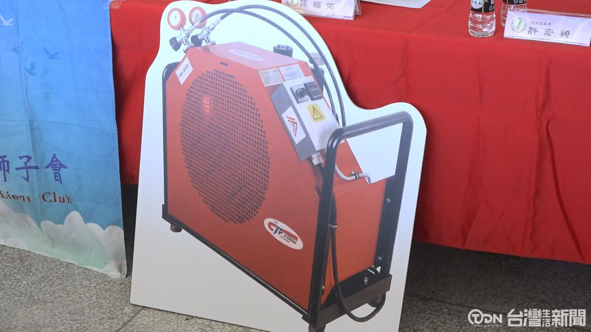 ▲台中市大安獅子會特別攜手在地企業,一同捐贈一台空氣灌充機與消防水帶自動捲取機/記者 陳柏翰攝
