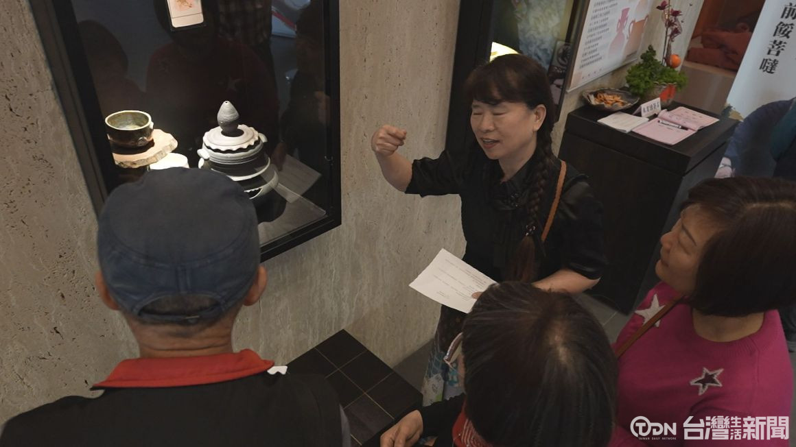 ▲陶藝家楊惠玲向眾人介紹作品的製作方式,也分享自己的創作理念。/記者 陳佳昇 攝。