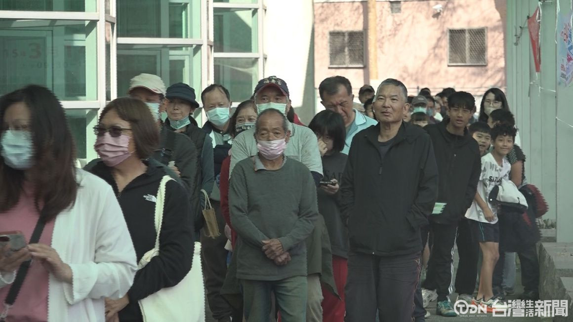 ▲魚池鄉公所大門口廣場非常熱鬧,鄉民排隊領取樹苗/記者 范宏坤 攝