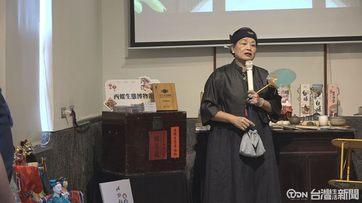 ▲「雲林百大文化基地巡迴展」,第二站移展至西螺生態博物館,館長何美慧向眾人解說館舍的歷史文化。記者 謝沂辰/攝