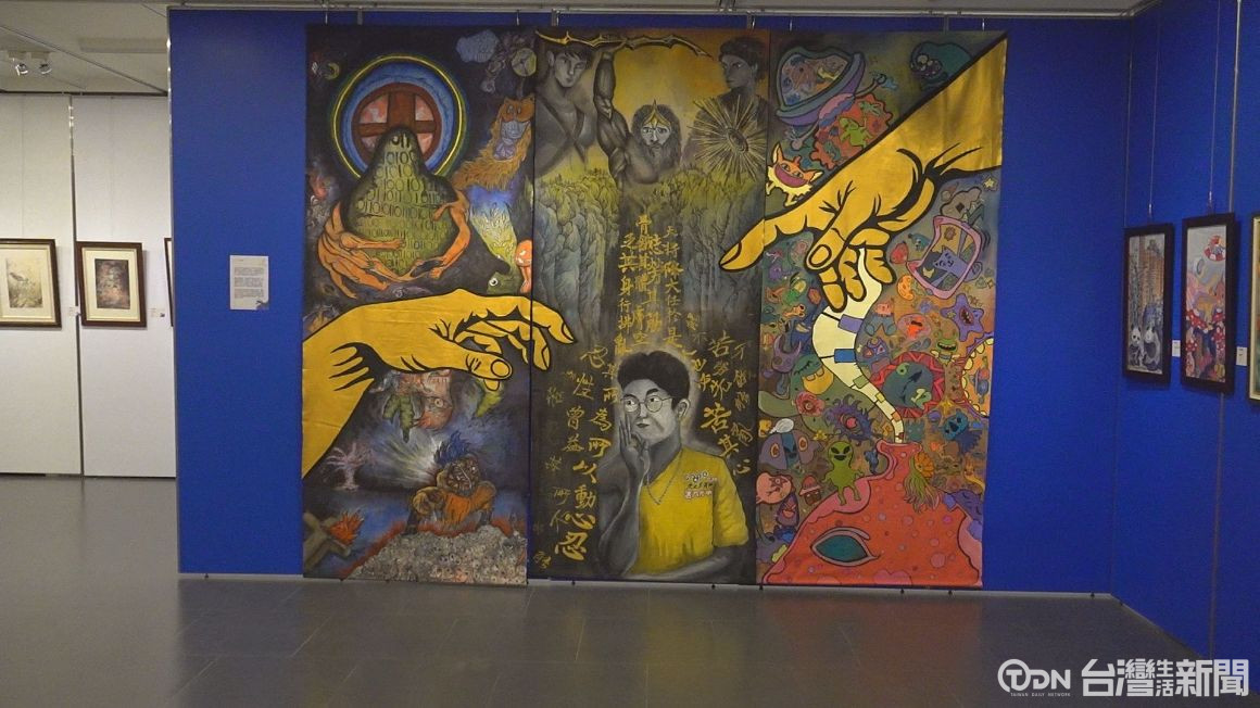 ▲元長國中每一年都會準備一件主題作品,今年以世界名畫「創世紀」為主題,用水墨、水彩來畫出學生從一年級到現在的學習過程。/記者 陳佳昇 攝。
