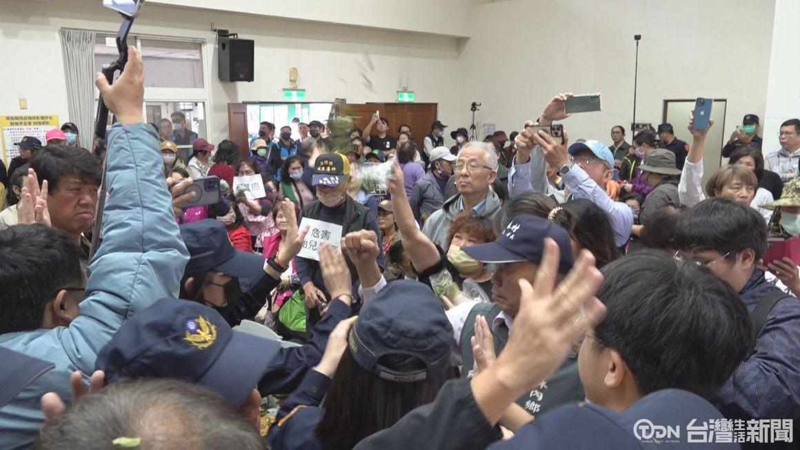 現場也有情緒較為激動的民眾,大力拍打桌子表達抗議,隨後遭警方強制帶離會場。