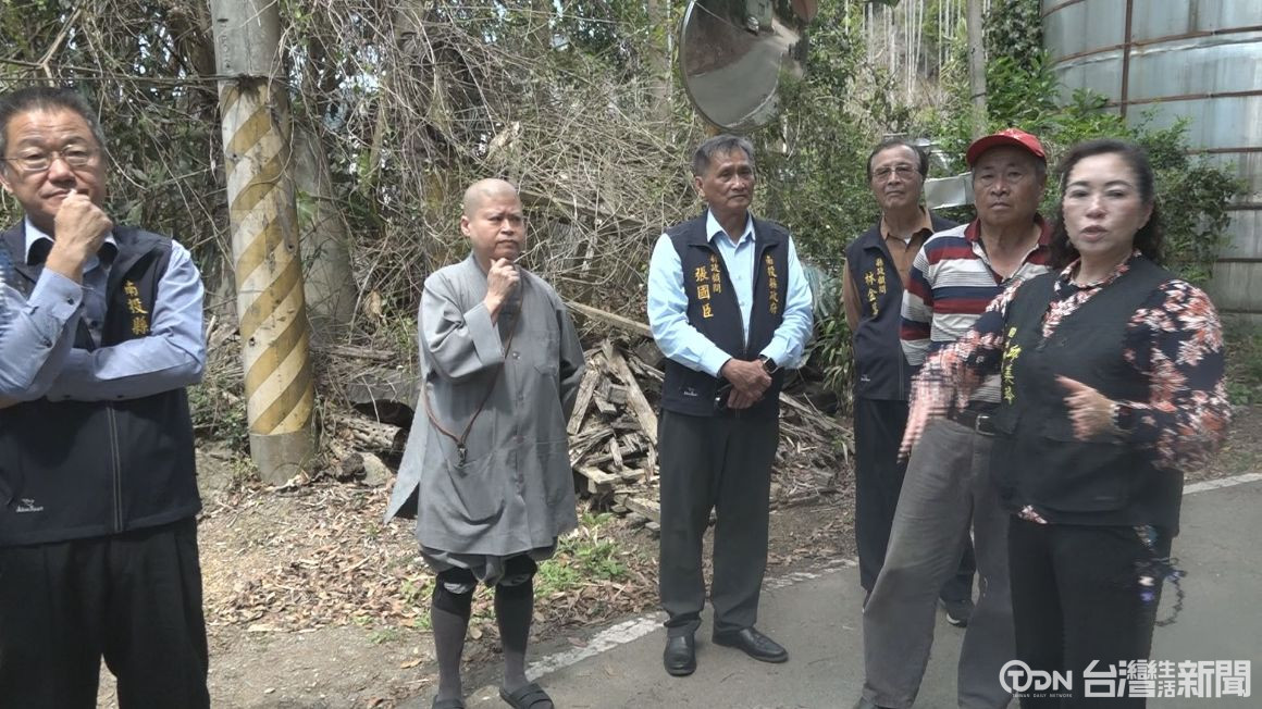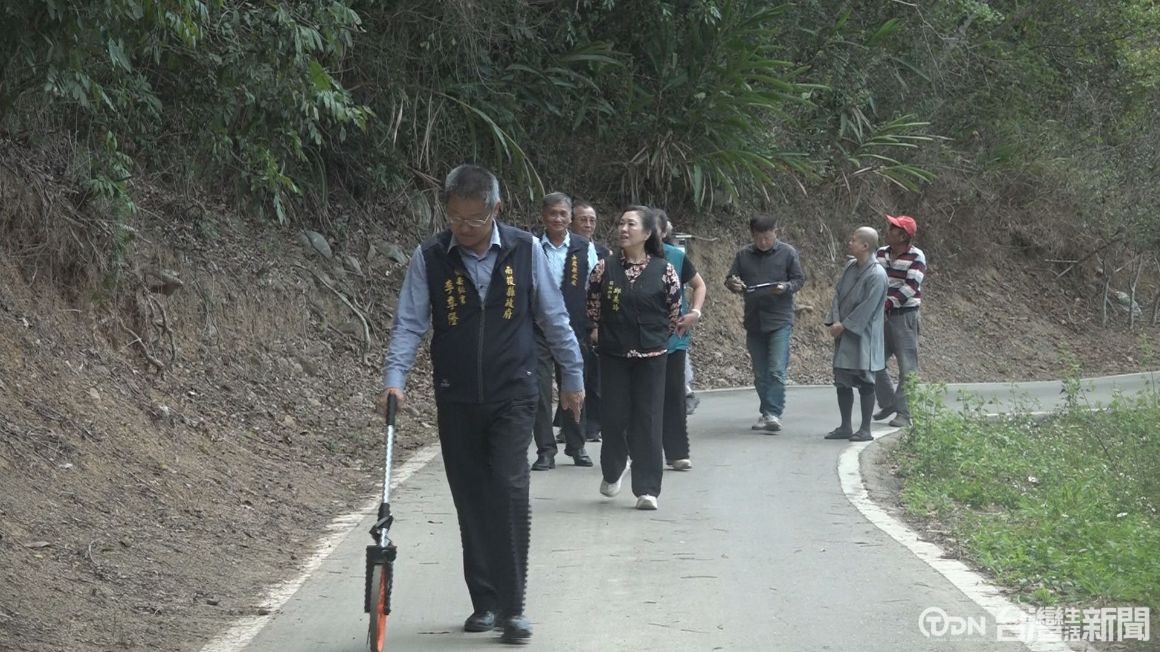 ▲國姓鄉長邱美玲、南投縣政顧問張國臣等單位人員爭取南投縣政府下鄉會勘,並且提報急待改善路段,維護民眾出入交通安全/記者 范宏坤 攝