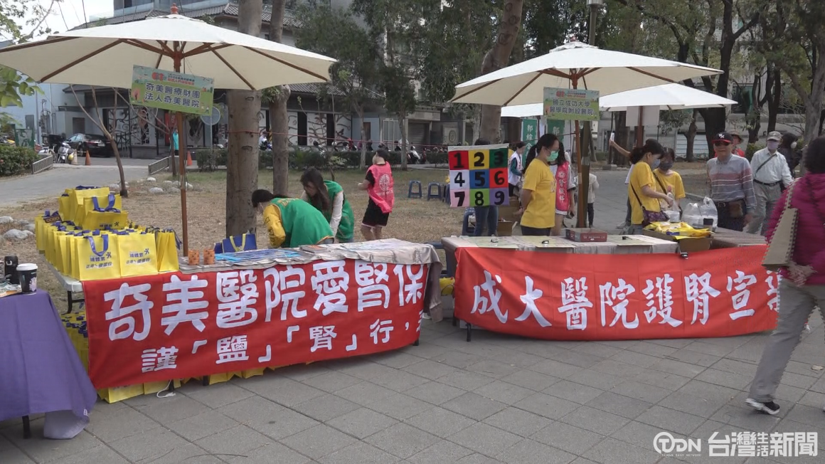 臺南市政府衛生局日前在巴克禮公園,舉辦2026世界腎臟病日宣導暨健走活動,並且與臺南市各大醫院共同合作,現場除了衛教資訊,也安排豐富的互動攤位與自我檢測工具,協助市民了解「泡、水、高、貧、倦」等腎病五大症狀,總共573位民眾參與闖關以及健走活動,現場非常熱鬧。