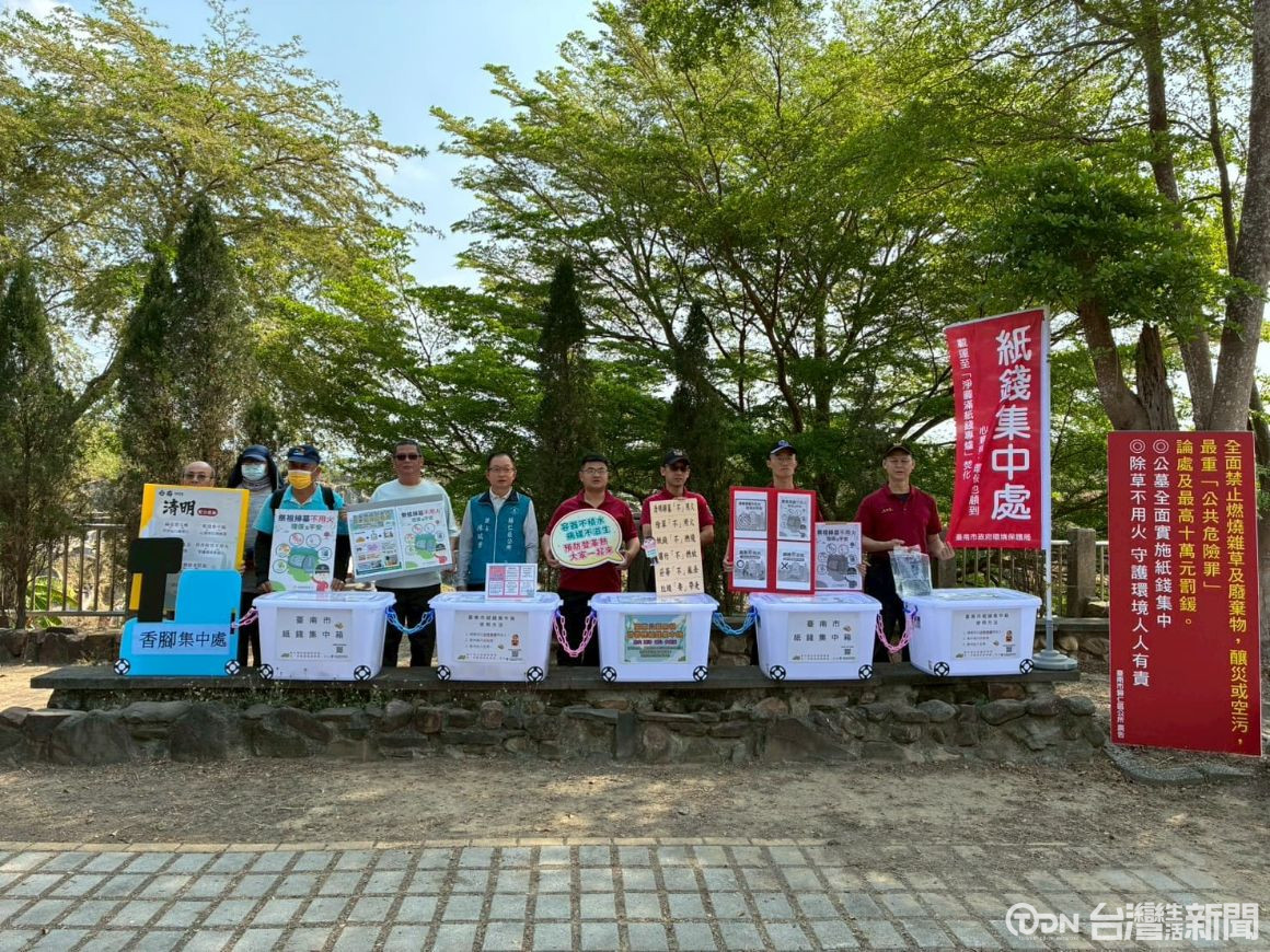 ▲歸仁區公所推出「紙錢列車」,邀請掃墓民眾將金紙統一集中處理,降低火災發生機率。/ 記者 林詩涵攝