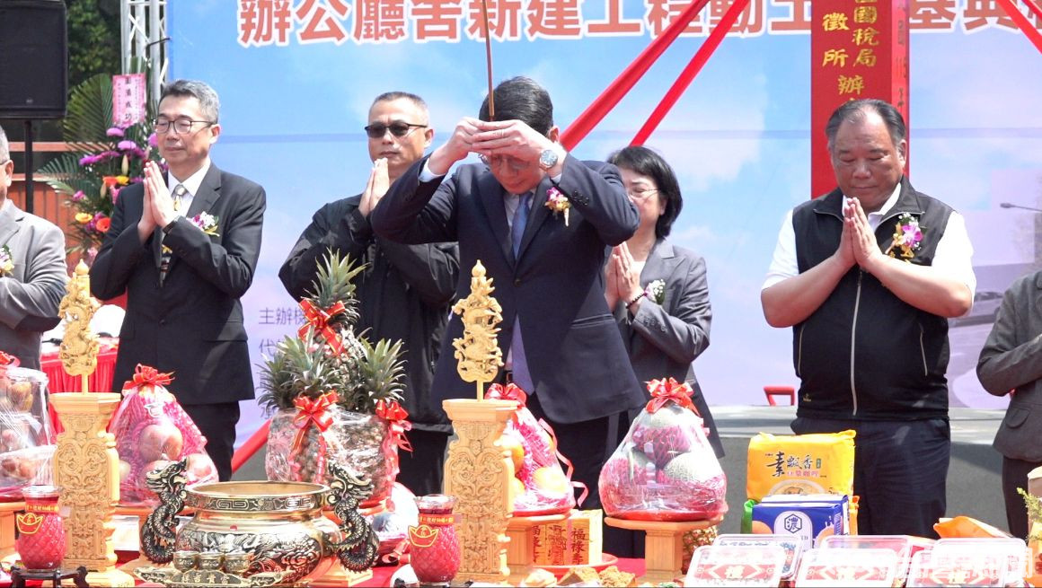 東勢稽徵所自921大地震後遷至臨時辦公據點,為提升服務品質並提供民眾更完善的洽公空間,辦公廳舍新建工程於這天正式啟動。未來將結合招商與規劃休憩區,打造便利與舒適的公共服務環境,提供居民及洽公民眾更優質的服務。