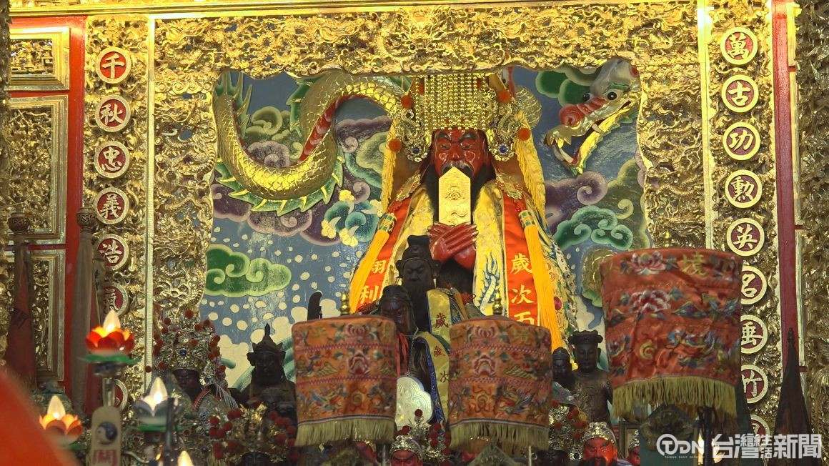 ▲豐原樂天宮主委與貴賓等人,在關聖帝君的見證下,頒贈獎助學金/記者 李晉仰攝