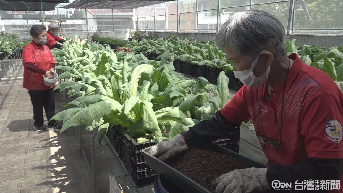 ▲以廚餘製作有機肥,社區打造空中菜園,提供長輩自己種菜自己食用,是五十甲社區一大特色。/記者 王昭聖 攝