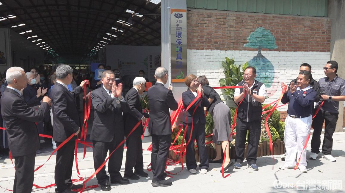 ▲眾人一同揭牌,宣告由慈濟在台中后里成立的「大中區環保輔具平台」,正式落成啟用/記者 陳柏翰攝