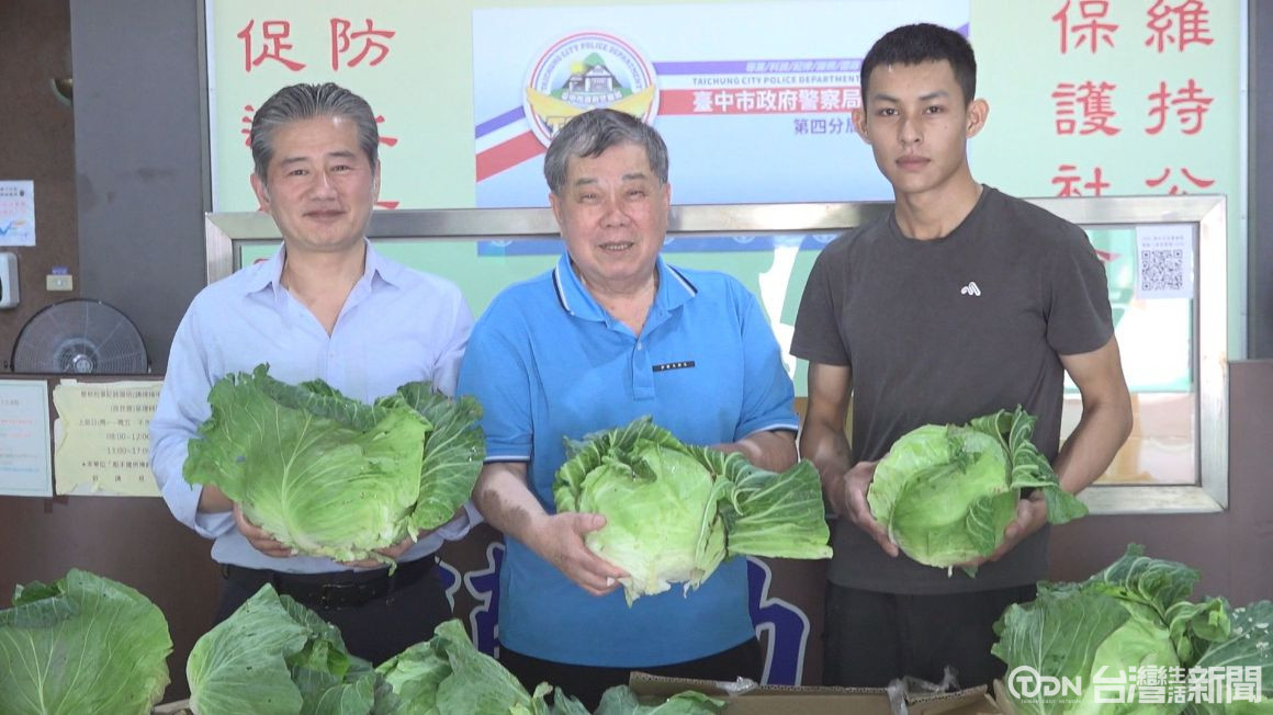上千顆的高麗菜新鮮運抵台中市警察局第四分局,這些清晨從外埔農田採收裝箱,拆開來看,每一顆初秋高麗菜十分漂亮也沉甸甸,原本青農已經打算做為肥料,所幸在外埔區農會的媒介下,找到愛心買主。