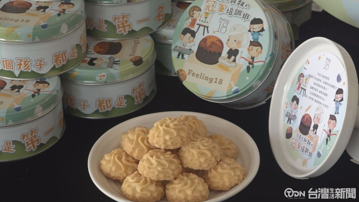 ▲贈送埔里地區兒童節禮物的餅乾,以冠軍培訓班為主題,鼓勵兒童生活或求學,都要有奪冠的企圖心。/記者王昭聖 攝