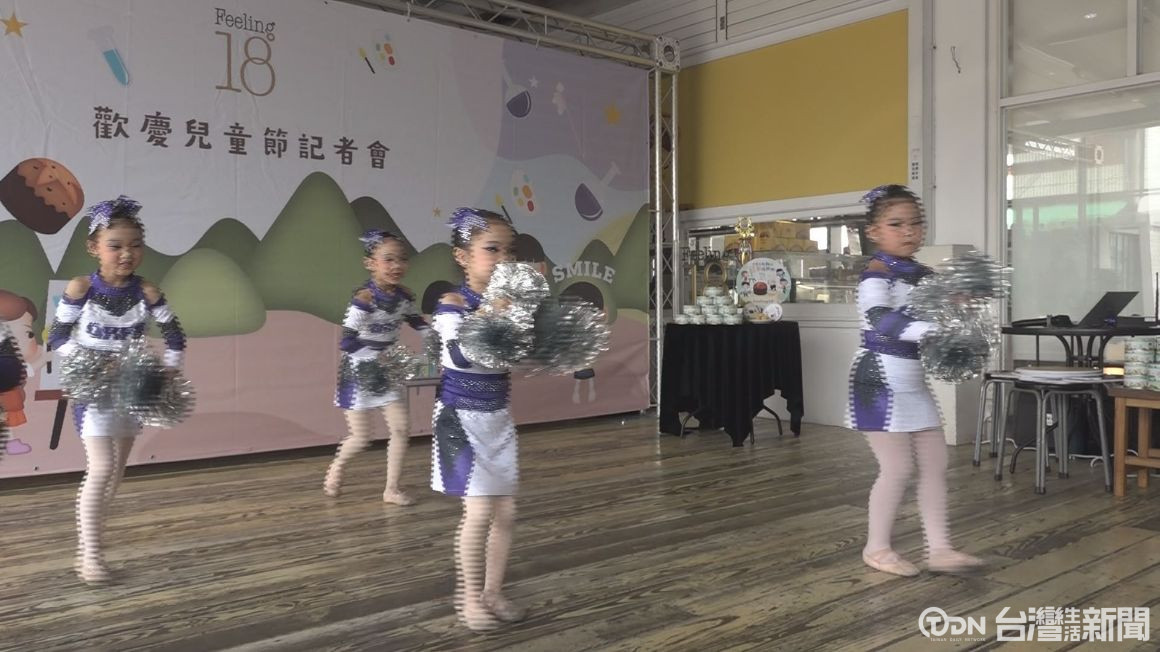 小朋友展現精彩的舞蹈,也表達他們兒童節,收到業者贈送餅乾禮盒的喜悅心情。