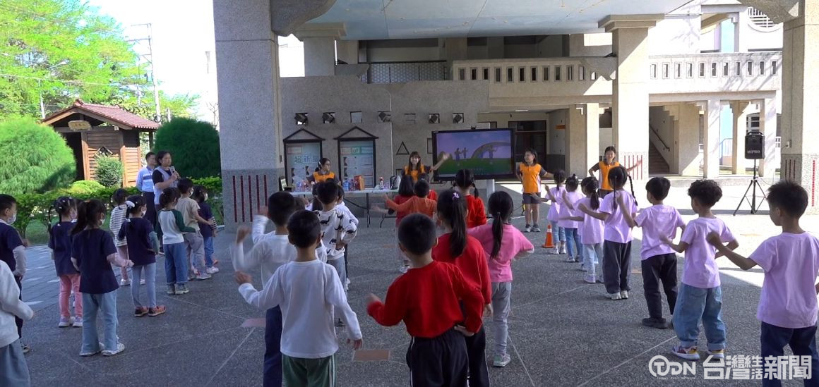跟著竹仔坑國小的大姊姊跳起健康操,朝陽科大附幼的小朋友活力滿滿,雖然動作有點不熟悉,但仍努力跟上,竹仔坑國小規劃這場「幼小銜接體驗課程」,讓幼兒園孩子順利銜接國小生活。