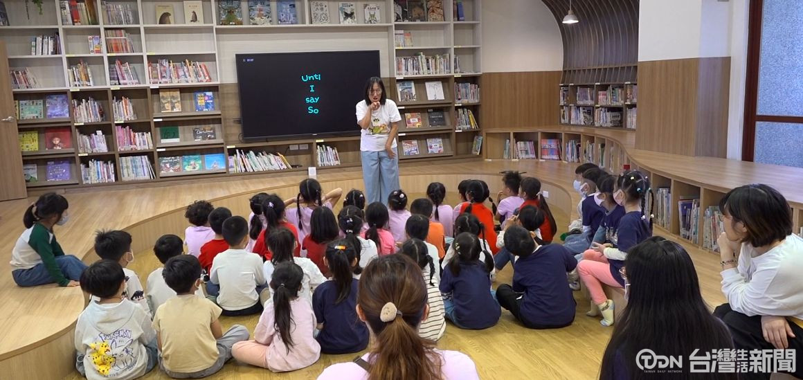 ▲小朋友們不僅入班體驗上課,圖書館內繪本老師也帶領小朋友透過故事認識臉部五官,內容生動有趣/記者 賴秋峰攝