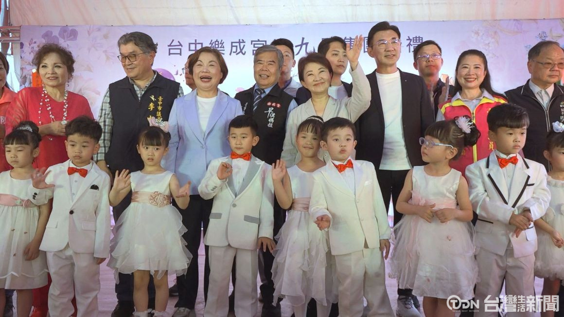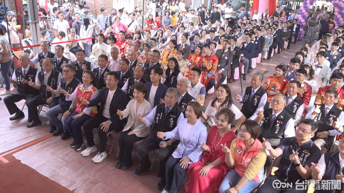 這天同時也是廟方舉辦第九屆集團結婚典禮的日子,台中市長盧秀燕更親自為新人證婚祝福,表示自2018年開辦以來,累計超過七百對新人在媽祖與月老見證下完成終身大事,不僅展現宗教撫慰人心的力量,也為台中傳遞了幸福與喜悅。