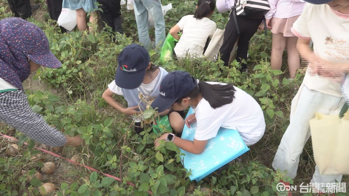 ▲新市區農會舉辦食農教育體驗課程,教新市國小學生如何採收洋蔥與胡蘿蔔。/記者 蕭建緯攝
