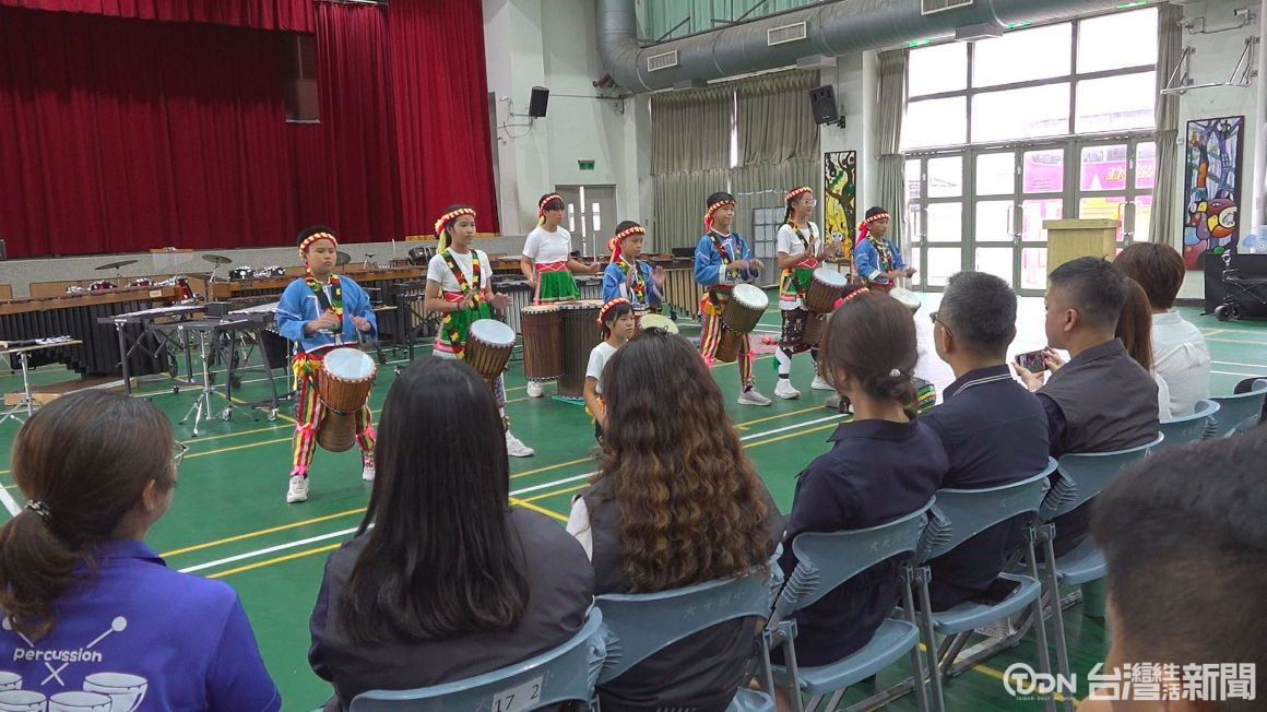 鼓聲開場,來自台東縣三仙國小打擊樂團,以「寶抱鼓」為主,融合阿美族文化,加入人聲吟唱與漁村常見的浮球,充滿原民文化力量,這次在金控公司文教基金會支持下,展開圓夢計畫,特別來到大里區大元國小交流。