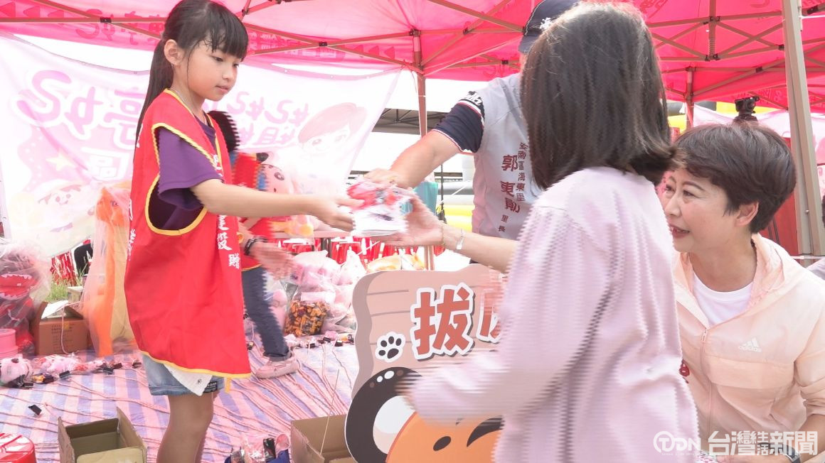 立委陳亭妃也化身為妃妃姐姐,陪伴小朋友一起玩懷舊抽抽樂拔虎鬚。