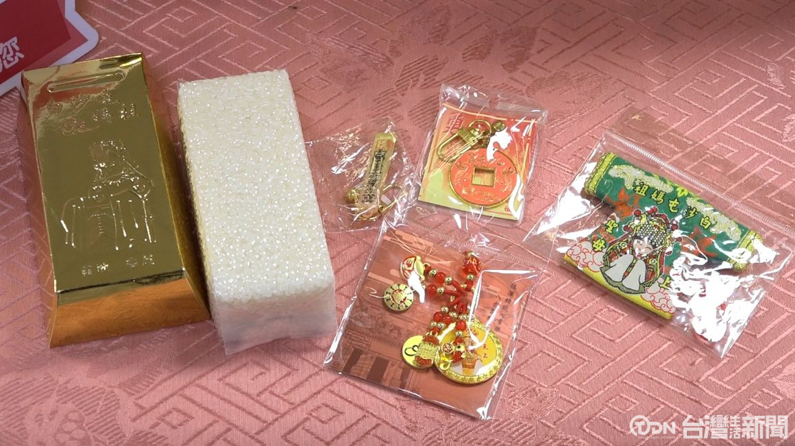 ▲一次訂購不同數量的白沙屯媽祖金磚米,還會贈送限量的媽祖祈福小物/記者 陳柏翰攝