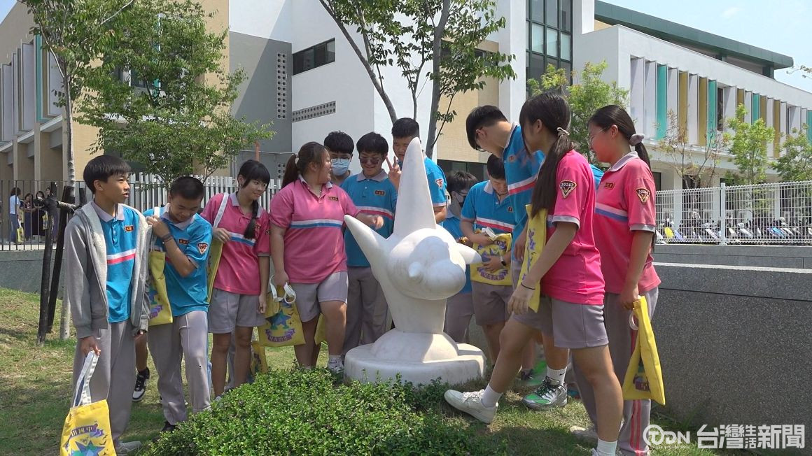 大里區成功國中活動中心暨公有地下停車場,日前完工,學校特別找來藝術家,以地方歷史與自然環境為發想,在活動中心周圍設置了三件公共藝術作品「星光雲集」,讓師生知道自己所生活的地方。