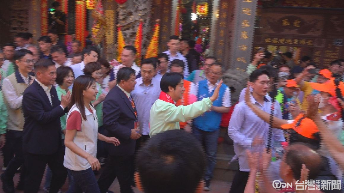 ▲總統賴清德蒞臨現場為媽祖淨神轎與恭請媽祖出神龕,現場民眾也熱情迎接總統。/記者 陳佳昇 攝。