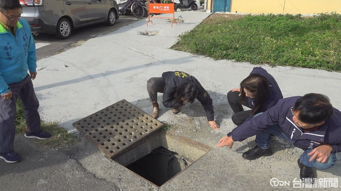 ▲下水道內,工人正在查看,溝渠內有許多大型土石淤積/記者 賴秋峰攝