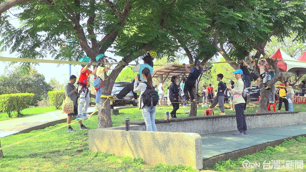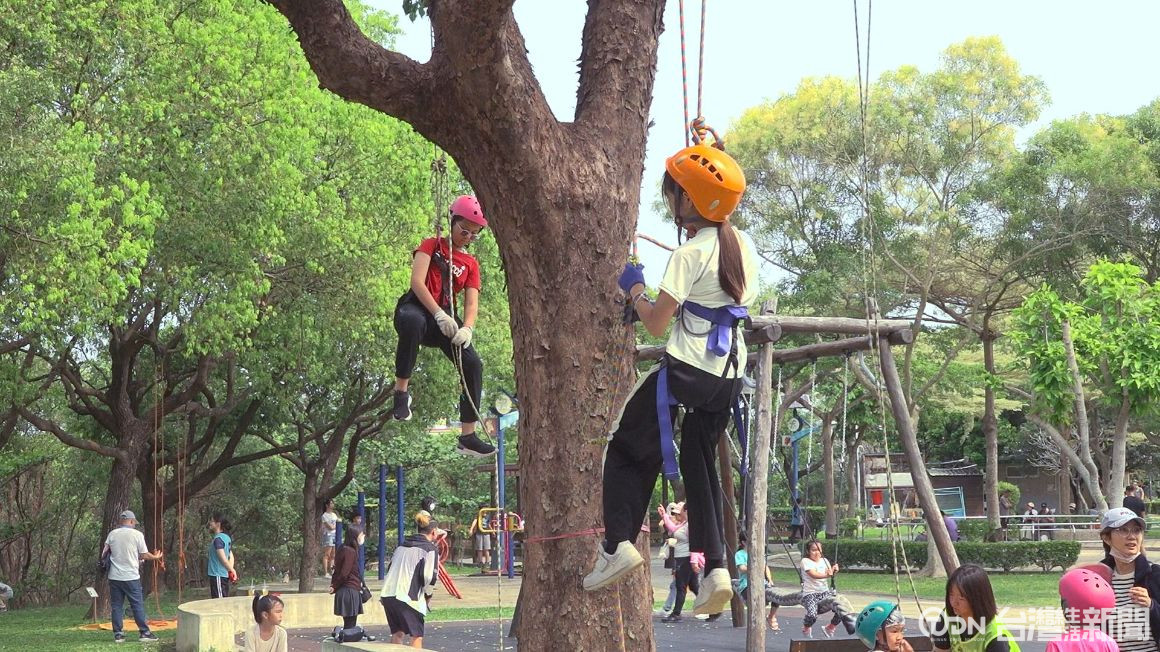 ▲今年活動更特別規劃攀樹走繩體驗,邀請專業教練指導小朋友,體驗戶外運動/記者 陳昭安 李汶羲攝