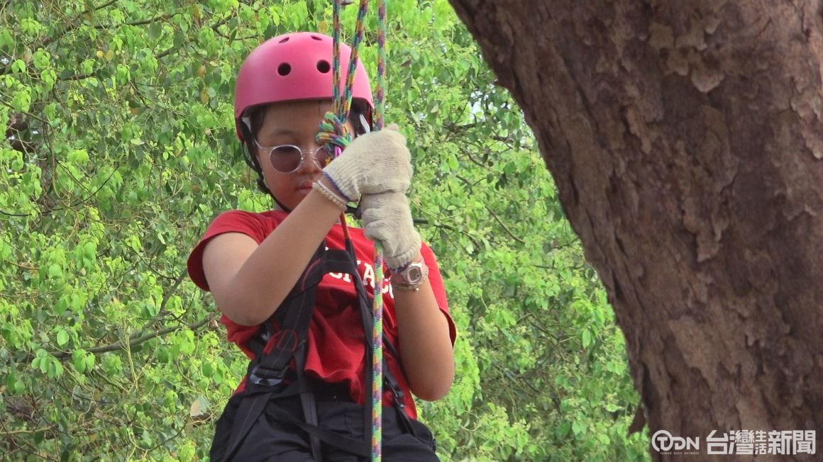 ▲攀樹走繩體驗考驗小朋友的勇氣,也培養身體的協調以及平衡能力/記者 陳昭安 李汶羲攝
