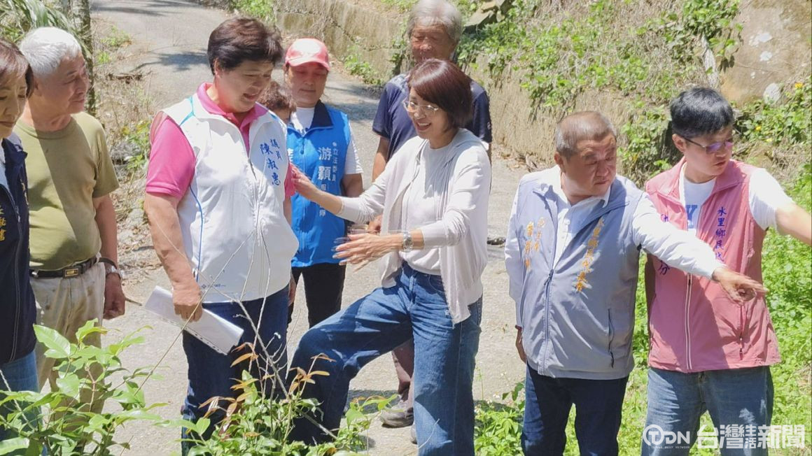 ▲南投縣長許淑華在議員陳淑惠的邀集下,來到車坪崙五號橋了解現況/記者金芸亘攝