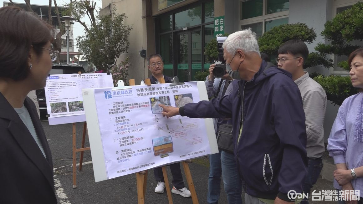 ▲ 圖為草屯鎮多處基礎建設需要改善,南投縣長許淑華和縣議員唐曉棻特別前往南埔里會勘,向鄉親說明施工規劃/記者林妤昕攝