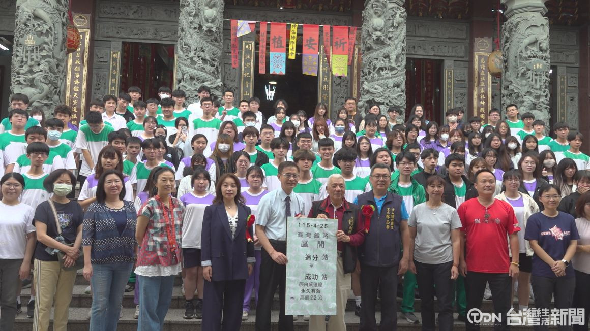 ▲校長帶領學生來到克明宮祈福。/記者 何羿勳 攝