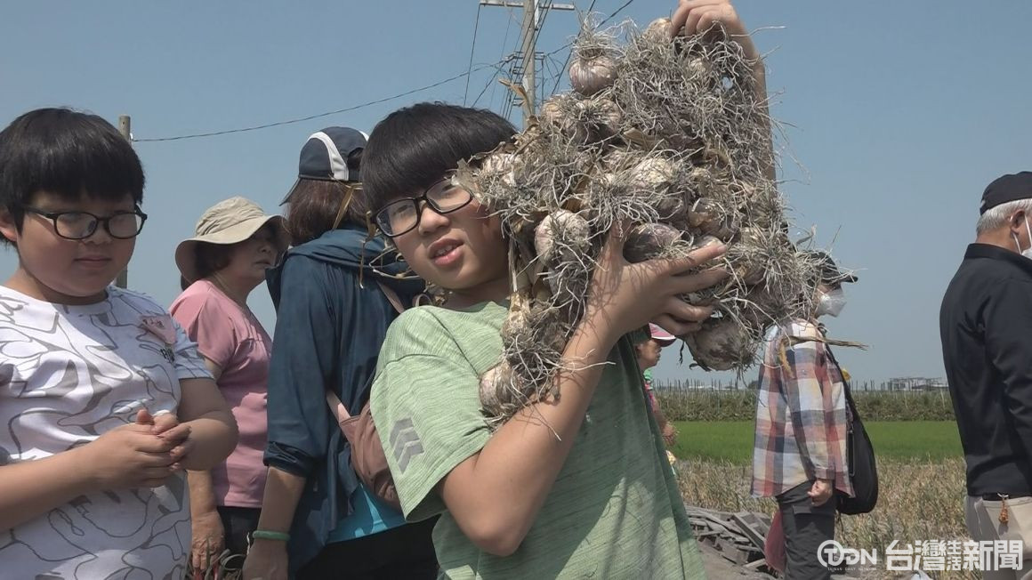 ▲西螺鎮農會舉辦蒜頭推廣活動,透過採蒜體驗,讓參與者更了解蒜頭從產地到餐桌的過程。記者 謝沂辰/攝