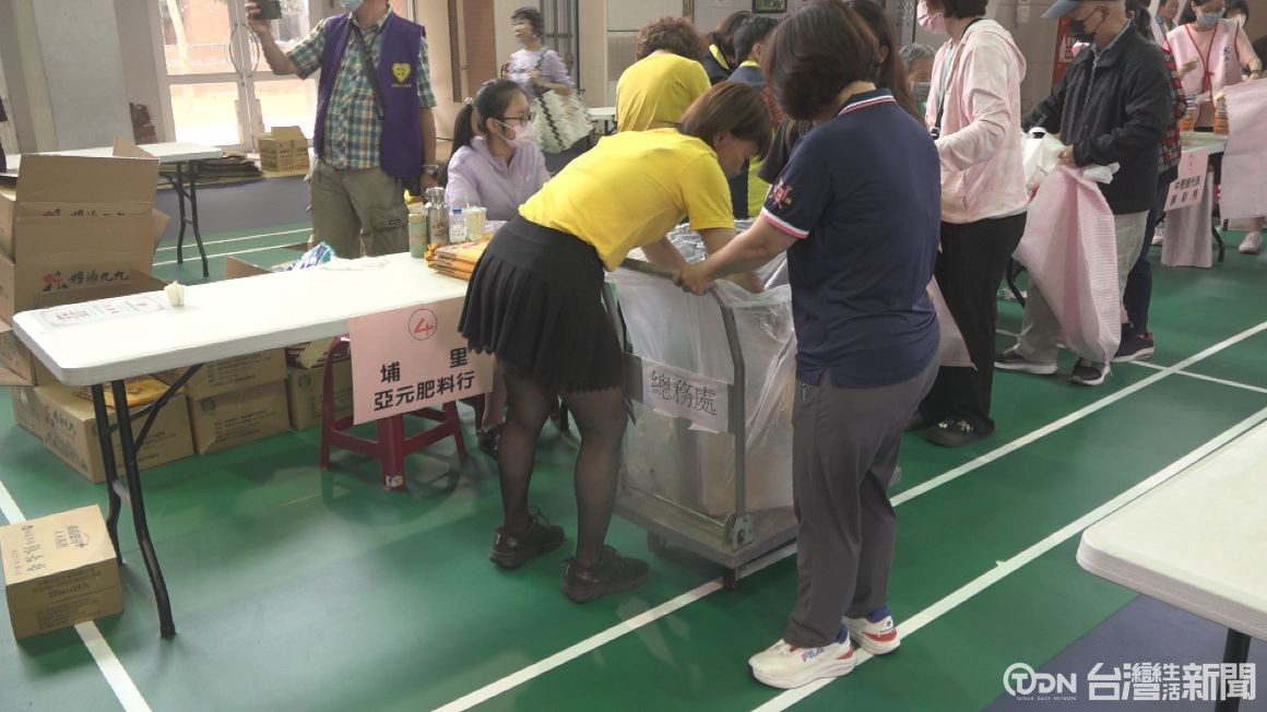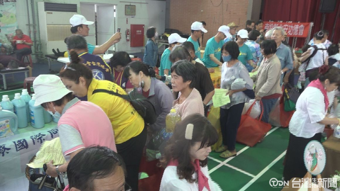 ▲民眾排隊,準備領取物資。/記者 周有勝 攝