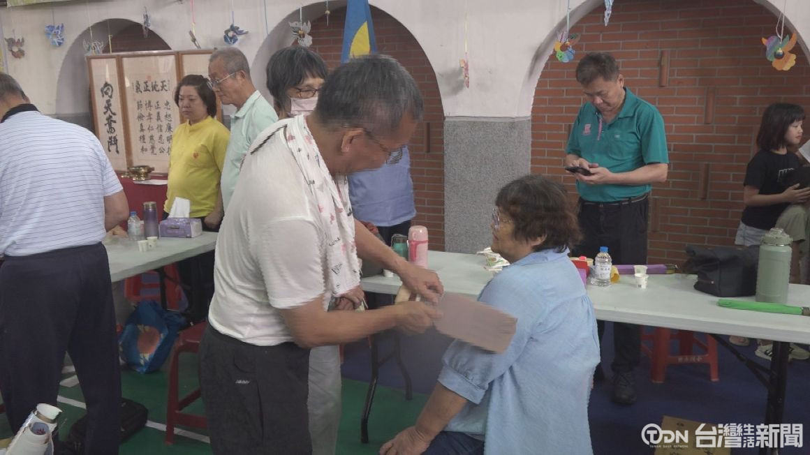 ▲現場除了愛心發放,也安排音樂演奏、品茶、義診及按摩服務。/記者 周有勝 攝