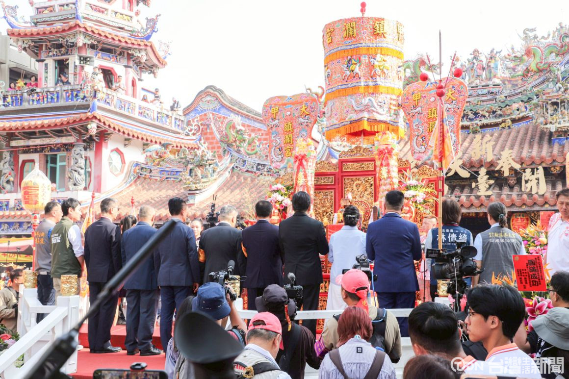 大甲媽遶境重頭戲祝壽大典21日在新港奉天宮前盛大登場,現場依循祭天古禮搭設天壇,遵照傳統儀式進行,場面莊嚴隆重。鎮瀾宮董事長顏清標說,這幾天很多人在路邊分送點心,做善事,謝謝所有的志工跟工作人員,內心只有感謝再感謝。新港奉天宮董事長何達煌表示,感謝各界共襄盛舉,也歡迎香客盡情品嚐新港在地美食,延續遶境熱鬧氣氛。