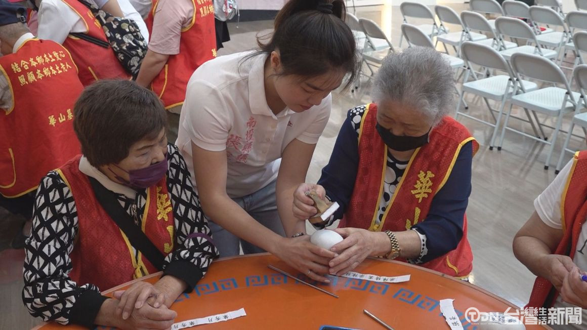 ▲議員張婉慈也陪同協助長輩茶球DIY,親手蓋章簽名,留下專屬紀念/記者 蔡育楷 攝