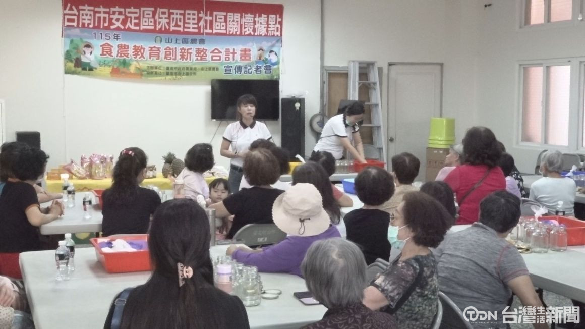 為推廣臺南在地優質鳳梨與食農教育,山上區農會今(22)日前往安定保安宮,舉辦115年度「鳳梨在地食農推廣教育活動」。現場規劃鳳梨苦瓜雞品嘗、愛鳳醬DIY及鮮果試吃等多元體驗,讓民眾深入認識鳳梨產業,同時以實際行動支持在地農民。