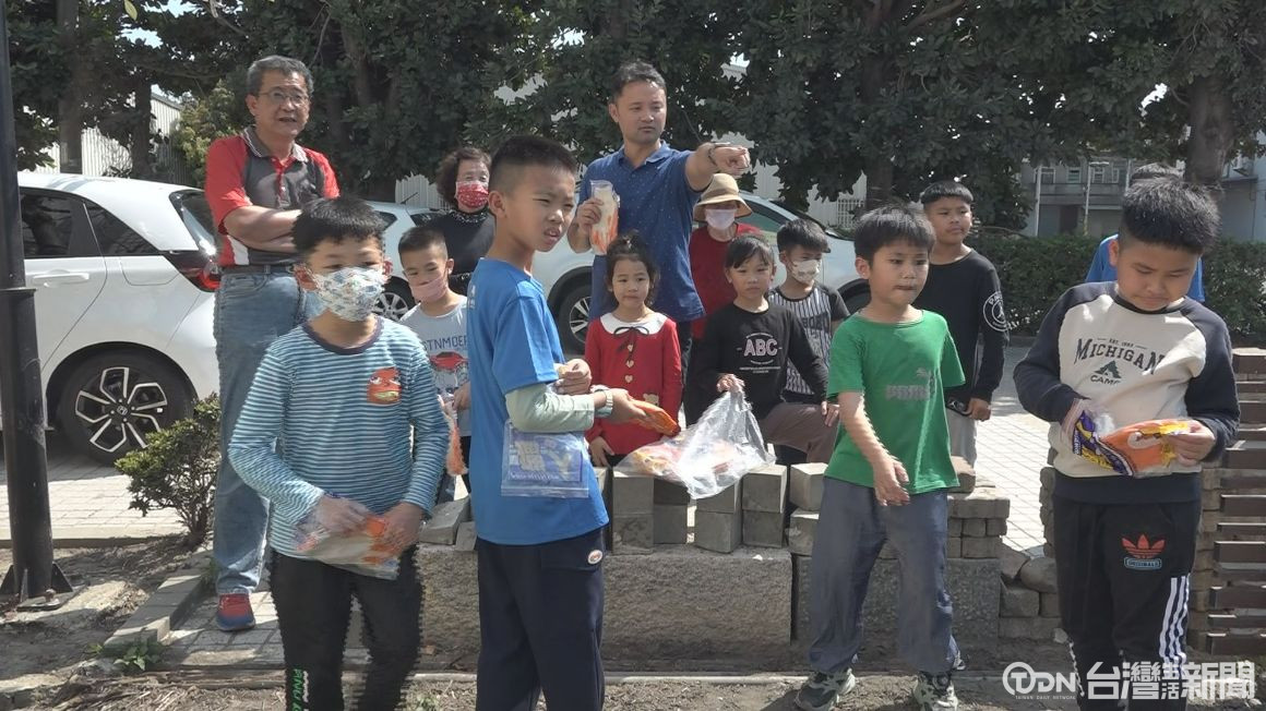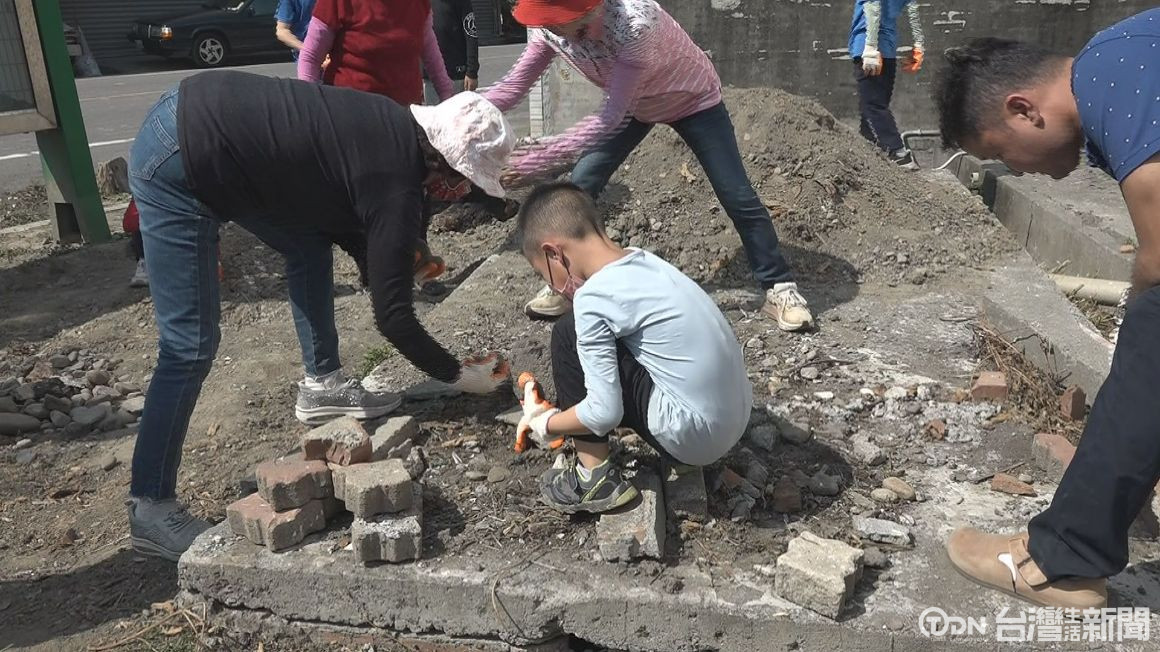 ▲東興國小學生與羅厝社區的阿公阿嬤一起動手撿拾石頭。記者 謝沂辰/攝