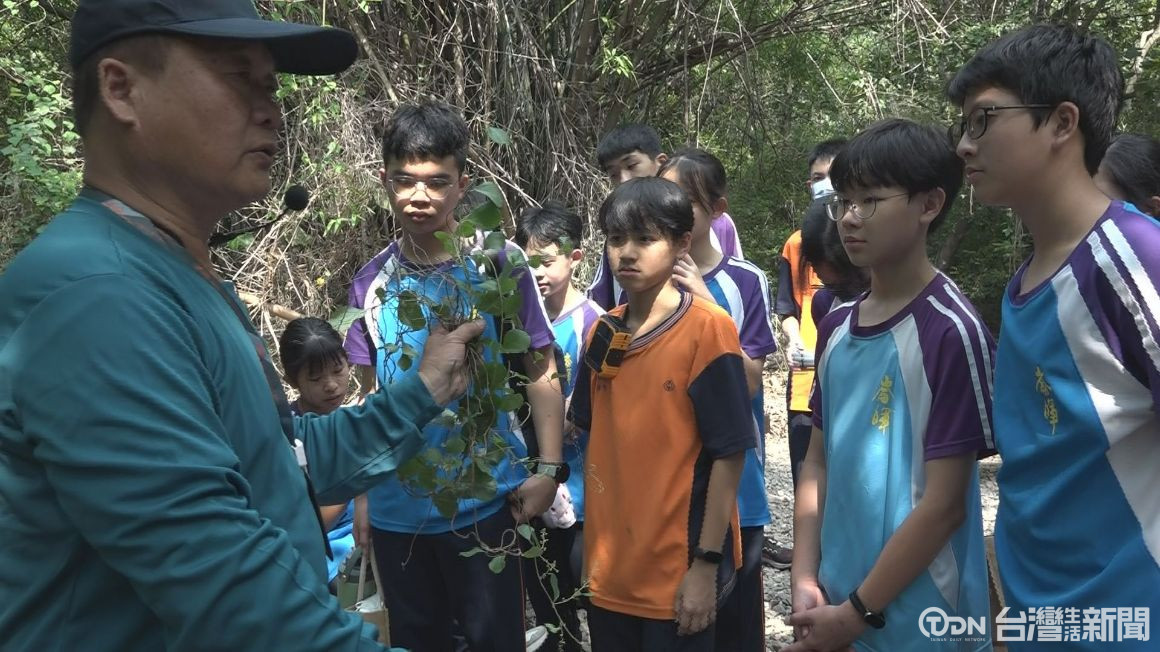 ▲林業及自然保育署南投分署邀請老師為二崙國中學生進行四番地保安林生態解說。記者 謝沂辰/攝