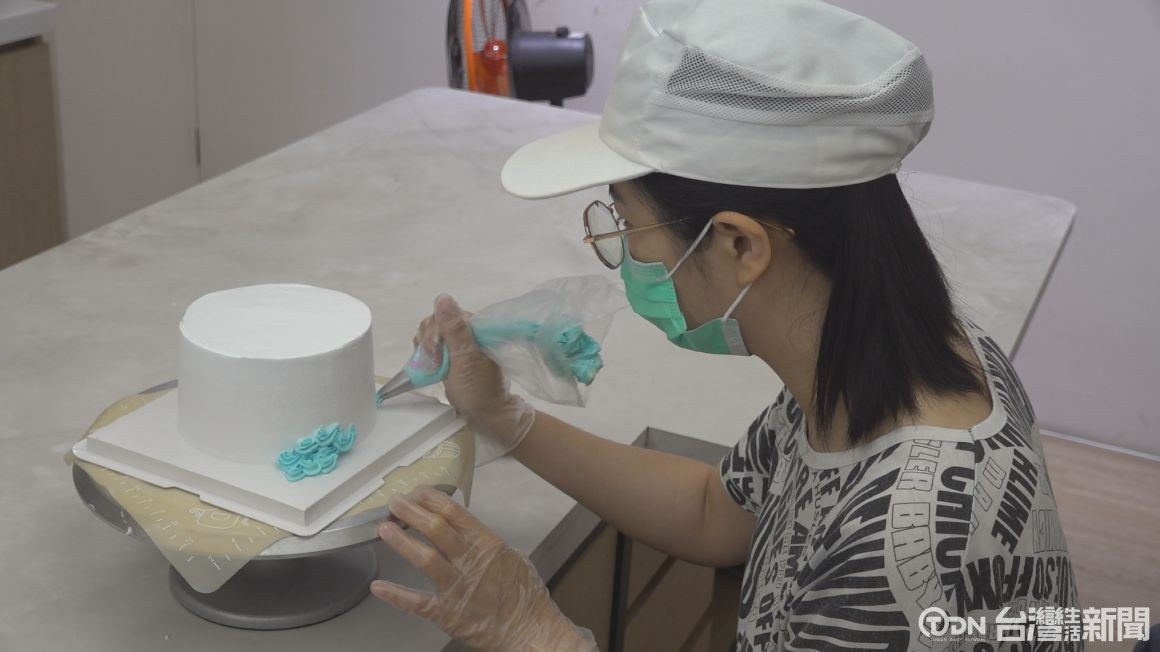 老闆娘製作蛋糕,抹奶油、畫圖案一氣呵成,短短時間內,一個客製蛋糕就完成,讓人看了很驚訝。