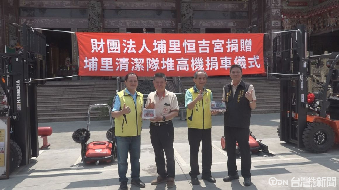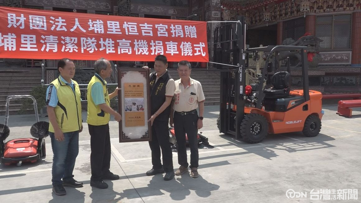 在鎮民代表曾鈴錫等熱心人士促成下,埔里鎮恆吉宮媽祖廟,捐贈兩輛全新堆高機,同時為了符合清潔隊作業需求,進行局部改裝,總價超過一百萬。